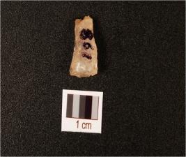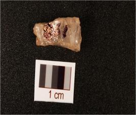 | Description / विवरण | Quartz flake with use wear marks on working edge and flake scars on surface, smooth surface. |