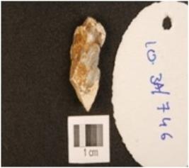 | Description / विवरण | A burin has blade scars and cortex on surface and slightly curved pointed working ends. |