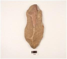| Description / विवरण | A handaxe made on quartzite end struck flake, prepared platform, slightly tapering on the working edge, chipped off on one side, triangular in section. |