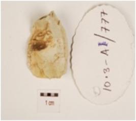 | Description / विवरण | A flake made on chert, has three flake scars, single ridged and irregular edges. |