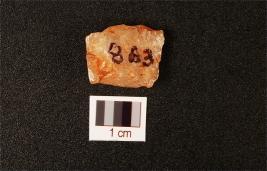 | Description / विवरण | A quartz flake with smooth and cortex on surface, use wear marks on working edge and flake scars on surface. |