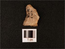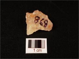 | Description / विवरण | A quartz scraper with use wear marks on working edge and flake scars on dorsal. |