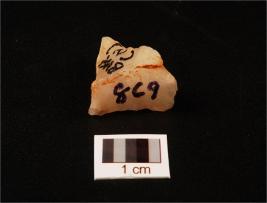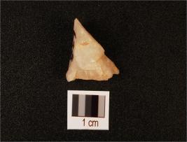 | Description / विवरण | Quartz flake with use wear marks on working edge and flake scars on surface, smooth and cortex on surface. |