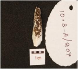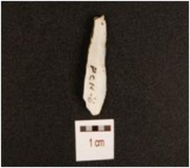 | Description / विवरण | A narrow point has blade scars on surface and slightly curved short pointed end. |