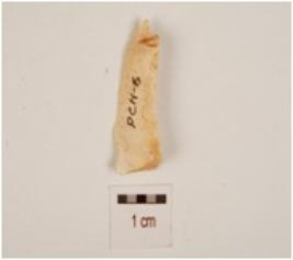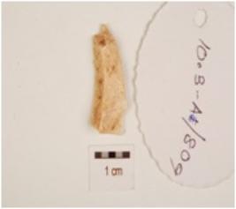 | Description / विवरण | Single ridged blade, trapezoidal cross section ,use wear marks on cutting edge and slightly curved pointed working end. |