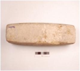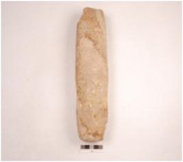 | Description / विवरण | A muller made on stone, cylindrical in shape, rectangular section, chipped off from surface and section, rough on surface. |
