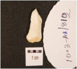 | Description / विवरण | A burin has blade scars on surface and slightly curved sharp pointed end. |