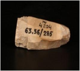 | Description / विवरण | A chert fluted core with prepared platform. 11 blades scars on surface. |