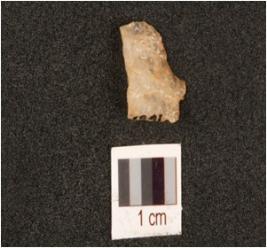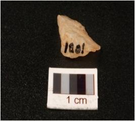 | Description / विवरण | A quartz flake, irregular plain surface, blunted ends. |
