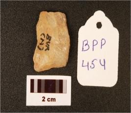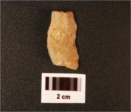 | Description / विवरण | A side scraper, prepared platform, single ridge, prominent bulb at distal end, uneven surface. |