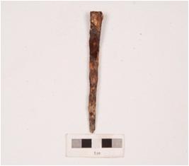 | Description / विवरण | An iron nail flat surface, rough and rusted surface, flat rectangular top. |