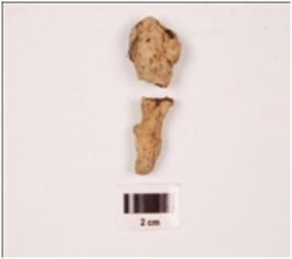 | Description / विवरण | A fragment iron nail, rusted and uneven surface, it has a bulgy top and pointed end, broken into two pieces. |