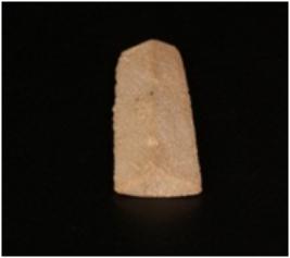| Description / विवरण | A chert blade with a midridge on dorsal, useware marks on cutting edge and triangular section. |