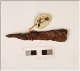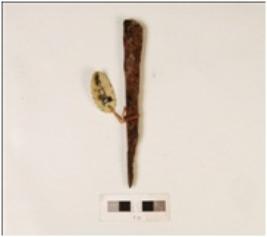 | Description / विवरण | Iron nail, pointed end, flat top, thick in character, uneven rough surface, rusted. |