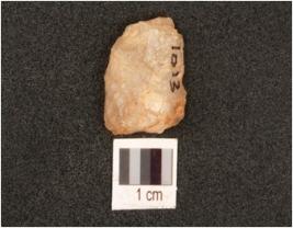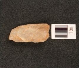 | Description / विवरण | A quartz scraper made on end struck flake, prominent bulb on ventral surface, flake scars on dorsal surface, use wear marks on cutting edges. |