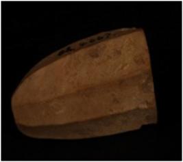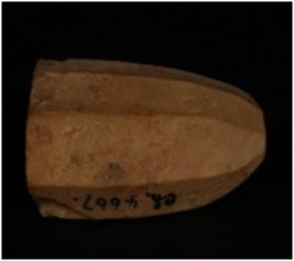| Description / विवरण | An agate core. 9 Blades scars on surface and prepared platform. |