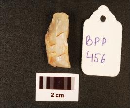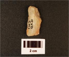 | Description / विवरण | A core based quartz side scraper with concave sides, prepared platform. |