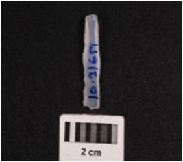 | Description / विवरण | Parallel sided stone blade, two ridge on dorsal surface, ventral surface is smooth and defuse bulb at proximal end, use wear marks on edge. |