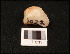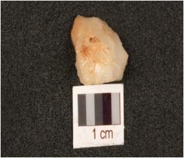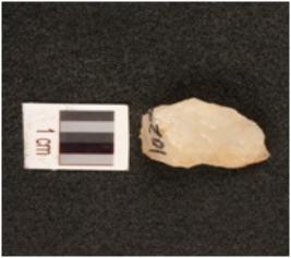 | Description / विवरण | A quartz scraper with prepared platform, cortex on dorsal surface with a ridge, use wear marks on cutting edges, negative bulb on ventral surface. |
