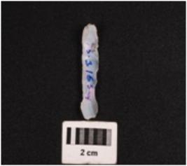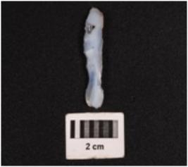 | Description / विवरण | A parallel sided stone blade, mid ridge on dorsal surface, ventral surface is smooth and defuse bulb at proximal end, use-wear marks on edge. |