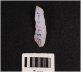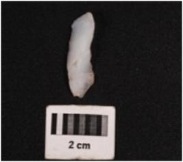 | Description / विवरण | Parallel sided stone blade, wavy ridge on dorsal surface, ventral surface is smooth and defuse bulb at proximal end, use wear marks on edge. |