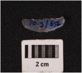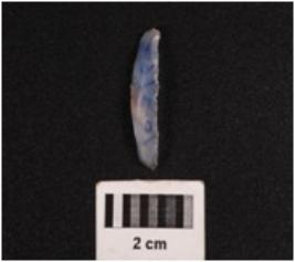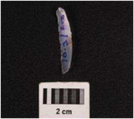 | Description / विवरण | Parallel sided stone blade, mid ridge on dorsal surface, ventral surface is smooth and defuse bulb at proximal end, use wear marks on edge. |