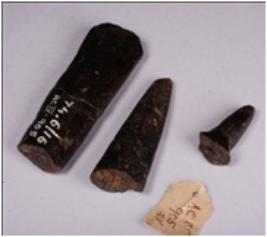 | Description / विवरण | Two pieces of iron spear head. Handle and middle part are restorated and nail. |