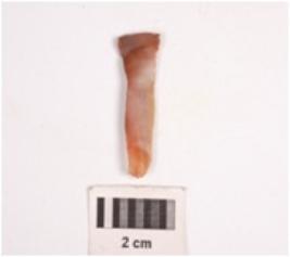 | Description / विवरण | Parallel sided stone blade, made on chert stone, two ridge on dorsal surface, ventral surface s smooth and natural texture are visible, prominent bulb use wear marks at edge. |