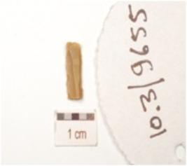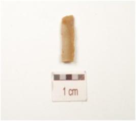 | Description / विवरण | A fragment of blade made on chert, bulb absent, sharp cutting edge, two ridges on surface and trapezoidal cross section. |