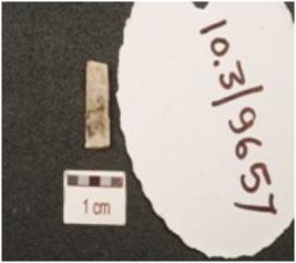 | Description / विवरण | A backed blade made on chert, bulb absent, sharp cutting edge, blunted one lateral side, triangular cross section and ridge on dorsal. |