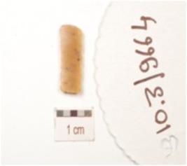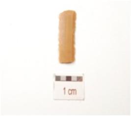 | Description / विवरण | A fragment of blade made on chert, sharp cutting edge, use wear marks on cutting edge, two ridges on dorsal surface and trapezoidal cross section. |