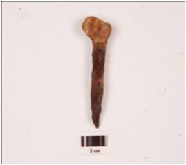 | Description / विवरण | An iron nail, rusted surface, and uneven, tip is broken, head is circular. |