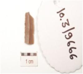 | Description / विवरण | A backed balde made on chert, sharp cutting edge, prominent ridge on dorsal surface, blunted one lateral side and triangular cross section. |