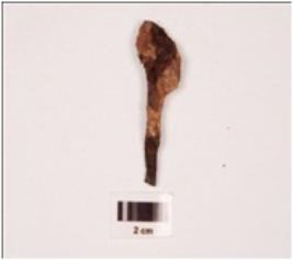 | Description / विवरण | A fragment of iron arrow head, uneven surface, rusted. |