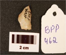| Description / विवरण | A quartz flake based side scraper prepared platform. |