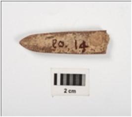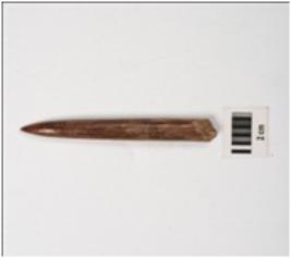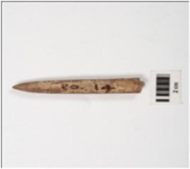 | Description / विवरण | Broken piece of a charred bone point polished and lustrous outer surface, coarse inner surface, the point is intact. |
