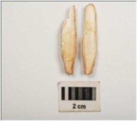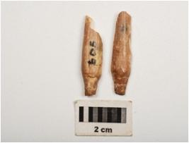 | Description / विवरण | Broken bone arrowhead with polished surface, broken at both ends, broken in two parts. |