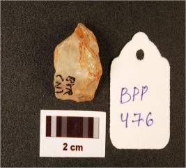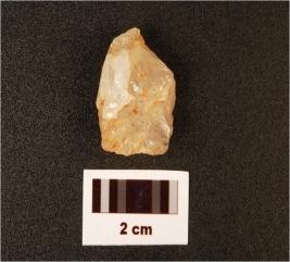 | Description / विवरण | A core based quartz end scraper, prepared platform. |