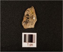 | Description / विवरण | Quartz waste flake with irregular shaped mark on the cutting edges, proximal and broken. |