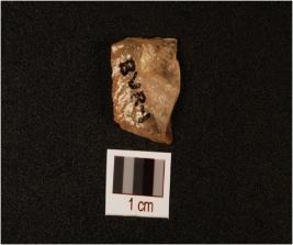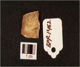 | Description / विवरण | Quartz, flake, square shape, use wear mark along one cutting edges, one blade scars on the surface. |