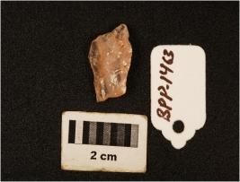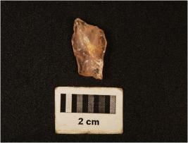 | Description / विवरण | Quartz, flake irregular shape, mark on the cutting edges, weathered condition. |