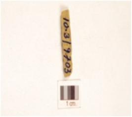 | Description / विवरण | A chert blade with prepared platform, triangular cross section, use-wear marks along the cutting edge and bulb absent. |