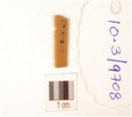 | Description / विवरण | Chert blade with trapezoidal cross section, use-wear marks along the cutting edge and bulb absent. |