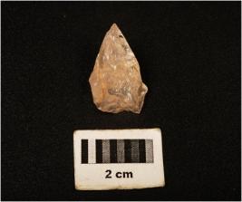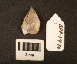 | Description / विवरण | Quartz, waste flake, irregular, anterior poration, pointed but posterior, surface broad. |