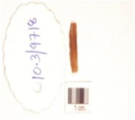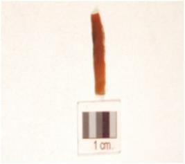 | Description / विवरण | A chert blade with prepared platform, triangular cross section, bulb absent and use-wear marks along the cutting edge. |