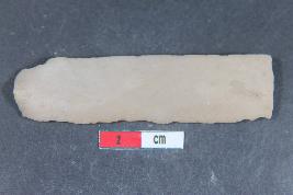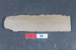 | Description / विवरण | A rectangular parallel sided blade with positive bulb of percussion on ventral side. It has two dorsal ridges and smooth surface. |