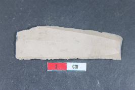 | Description / विवरण | A rectangular parallel sided blade with positive bulb of percussion on ventral side. It has three dorsal ridges and smooth surface. |