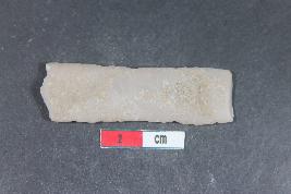 | Description / विवरण | A rectangular parallel sided blade with positive bulb of percussion on ventral side. It has two dorsal ridges and smooth surface. |