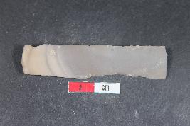 | Description / विवरण | A rectangular parallel sided blade with positive bulb of percussion on ventral side. It has two dorsal ridges and smooth surface. |