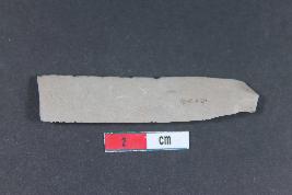 | Description / विवरण | A rectangular blade with positive bulb of percussion on ventral side. It has two dorsal ridges and smooth surface. |